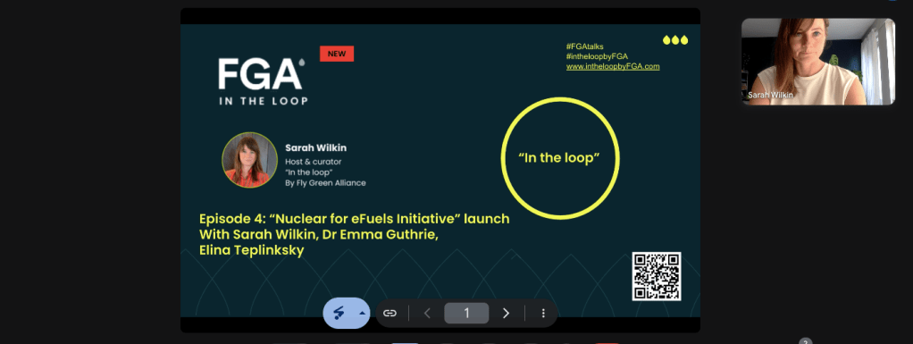 On August 12th , 2025 Fly Green Alliance hosted the launch the Nuclear e-Fuels Initiative (NEFI) on the 4th episode of “In the Loop”. Founder and CEO Sarah Wilkin shared her own evolving perspective on nuclear which began in 2023 after realising the vast amount of energy that will be required for aviation decarbonisation.